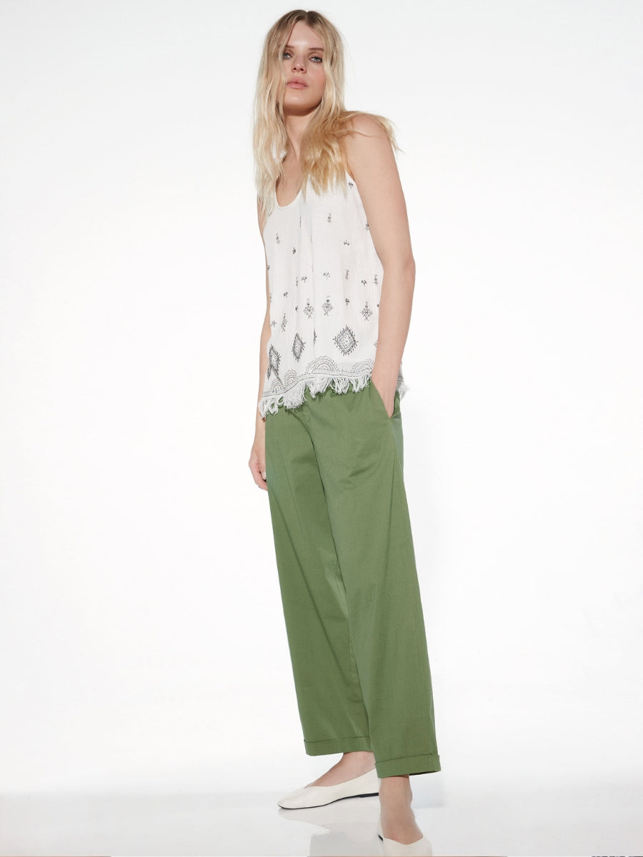 Top in cotone senza maniche con ricami e frange - MILK - TP57