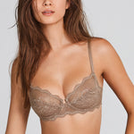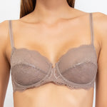 Reggiseno classico non imbottito con ferretto. Reggiseno che garantisce comfort e sostegno anche alle coppe differenziate C e D. Reggiseno realizzato in morbido pizzo dal prezioso smerlo con romantica trama floreale. Crea infinite combinazioni con gli slip in pizzo e in microfibra e in nuance.