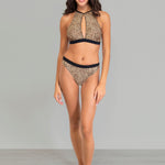 Crop top non imbottito senza ferretto realizzato in leggera microfibra mat con micro-stampa maculata. Modello esternabile caratterizzato da cut-out frontale e sul retro. Allacciatura posteriore regolabile. Bordatura nera elastica. La stampa animalier di questo top, conferisce al capo un tocco di classe e originalità. L’animalier è una tendenza senza stagione e con questa proposta entra di diritto tra i capi must have, senza perdere quell’allure un po’ provocatoria che sa osare senza esagerare.