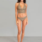 Crop top non imbottito senza ferretto realizzato in leggera microfibra mat con micro-stampa maculata. Modello esternabile con profonda scollatura frontale e allacciatura regolabile posteriore. La stampa animalier di questo top, conferisce al capo un tocco di classe e originalità. L’animalier è una tendenza senza stagione e con questa proposta entra di diritto tra i capi must have, senza perdere quell’allure un po’ provocatoria che sa osare senza esagerare.