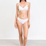 Reggiseno a triangolo non imbottito e senza ferretto realizzato in cotone bio, ideale per chi ricerca un comfort e un sostegno naturale. Design essenziale impreziosito da puntina in pizzo e fiocchetto centroseno. Il cotone bio si fa glamour nella nuova collezione Verdissima: semplicità e raffinatezza danno forma a molteplici modelli basic ideati per un daily wear naturale, confortevole e di qualità.