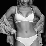 Reggiseno a triangolo con coppe imbottite e senza ferretto realizzato in cotone bio che valorizza il décolleté assicurando un alto livello di comfort e un sostegno naturale. La puntina in pizzo e il fiocchetto centroseno ne impreziosiscono il design minimal. Il cotone bio si fa glamour nella nuova collezione Verdissima: semplicità e raffinatezza danno forma a molteplici modelli basic ideati per un daily wear naturale, confortevole e di qualità.