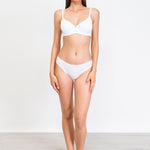 Reggiseno classico non imbottito con ferretto realizzato in cotone bio. Design progettato per garantire sostegno elevato anche alle coppe differenziate donando un look naturale. Modello minimal impreziosito da puntina in pizzo e fiocchetto centroseno. Il cotone bio si fa glamour nella nuova collezione Verdissima: semplicità e raffinatezza danno forma a molteplici modelli basic ideati per un daily wear naturale, confortevole e di qualità.