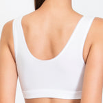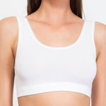 Top non imbottito e senza ferretto realizzato in cotone bio, perfetto per chi desidera un look sporty e comodo. Elastico sotto seno e spallina larga per un sostegno naturale. Da indossare anche a vista per outfit casual e di tendenza. Il cotone bio si fa glamour nella nuova collezione Verdissima: semplicità e raffinatezza danno forma a molteplici modelli basic ideati per un daily wear naturale, confortevole e di qualità.