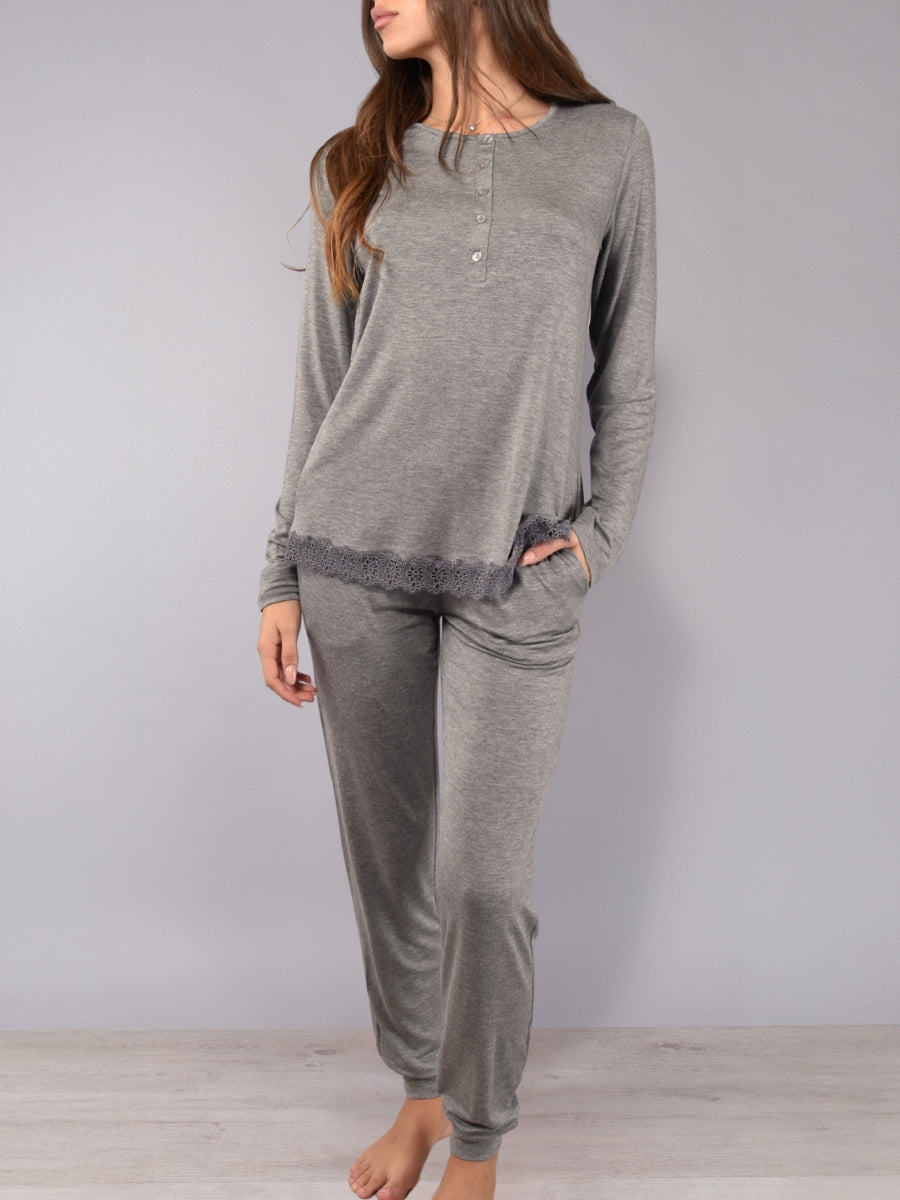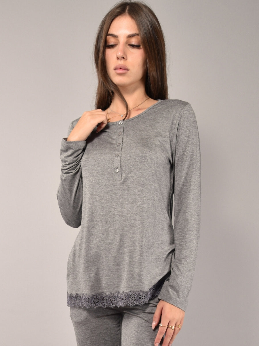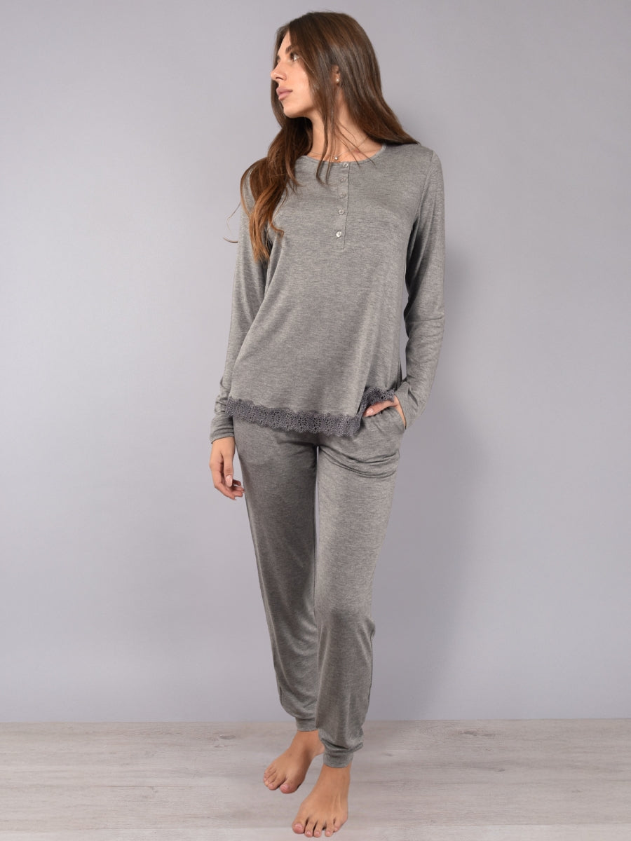 Pigiama serafino - GRIGIO SCURO MELANGE - A - GRIGIO SCURO MELANGE - MC11