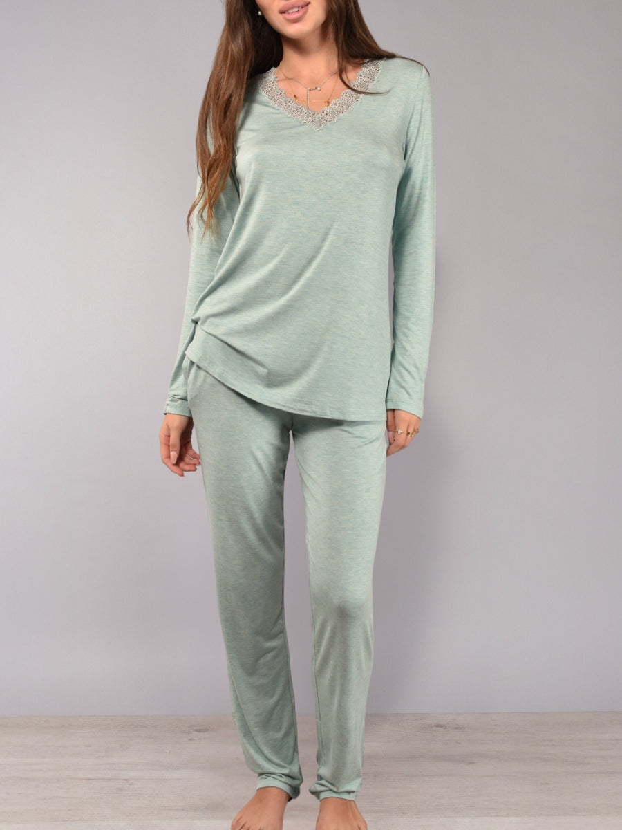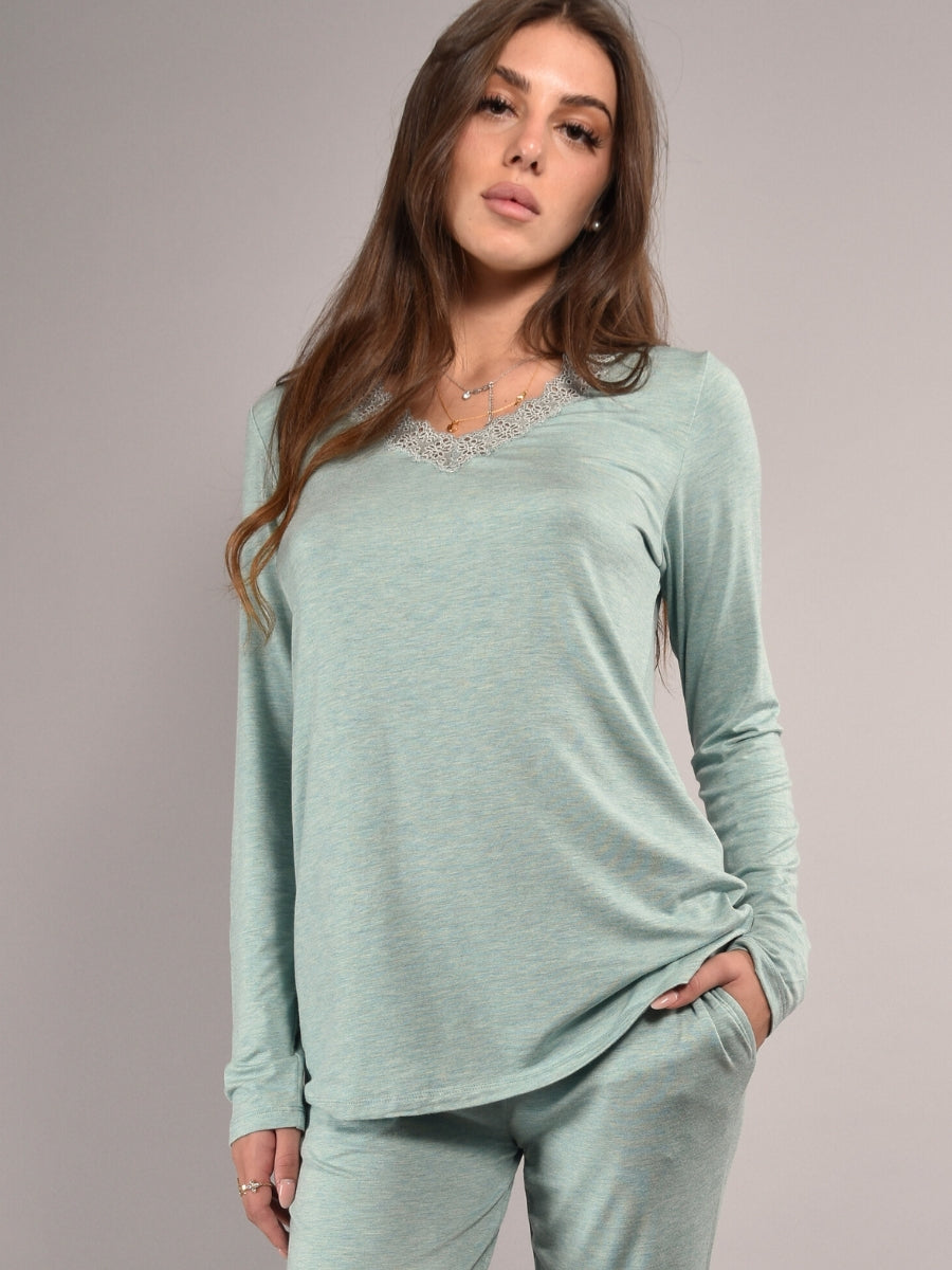 Pigiama scollo a V - SALVIA MELANGE - A - SALVIA MELANGE - MC12