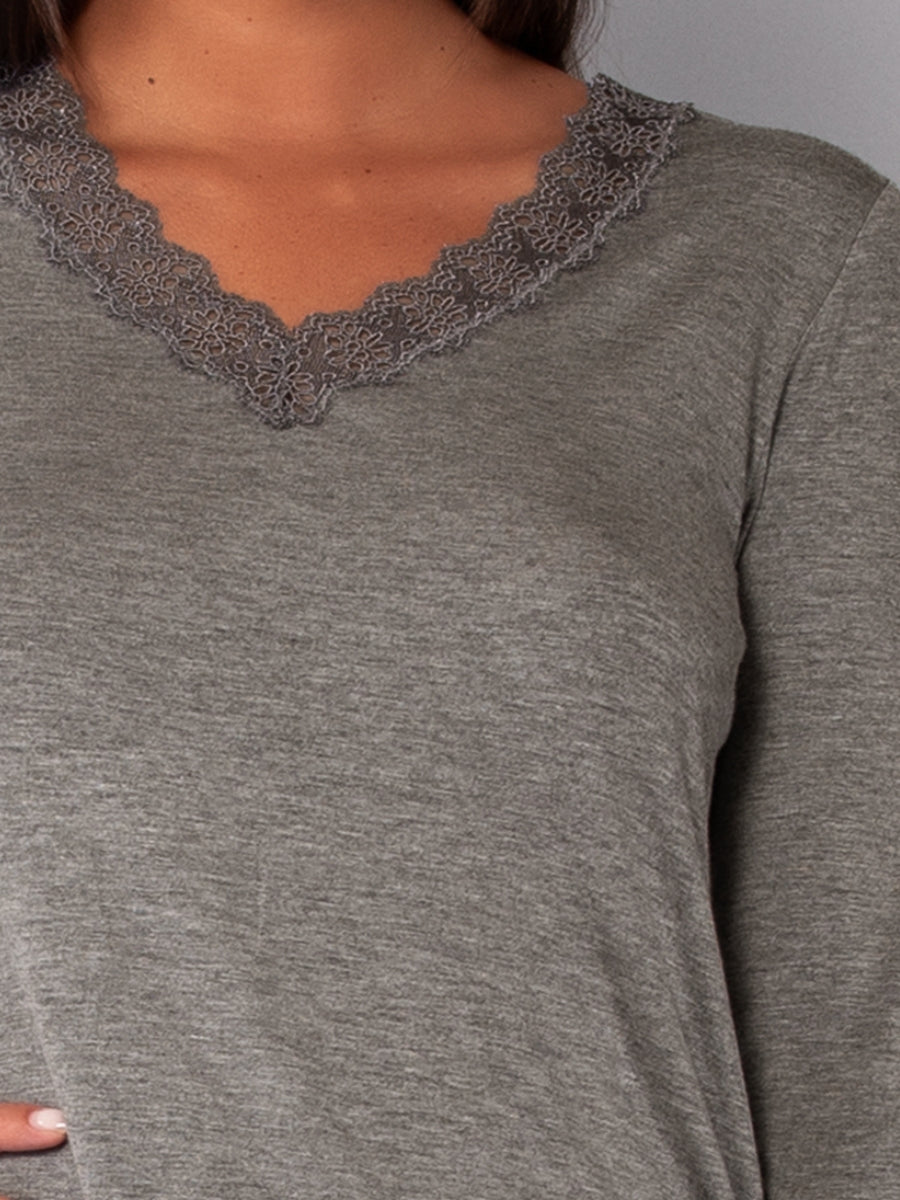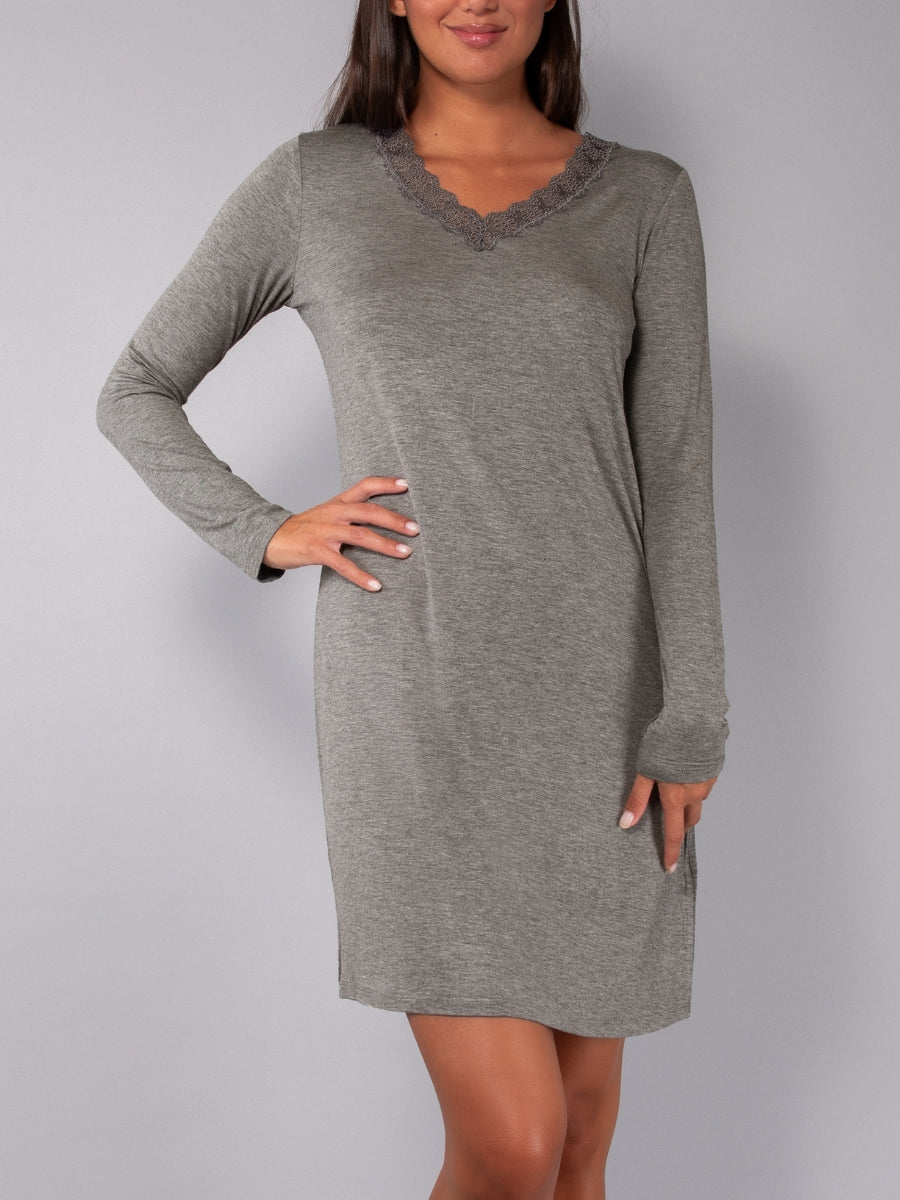 Camicia da notte scollo a V L 90 - GRIGIO SCURO MELANGE - A - GRIGIO SCURO MELANGE - MC28