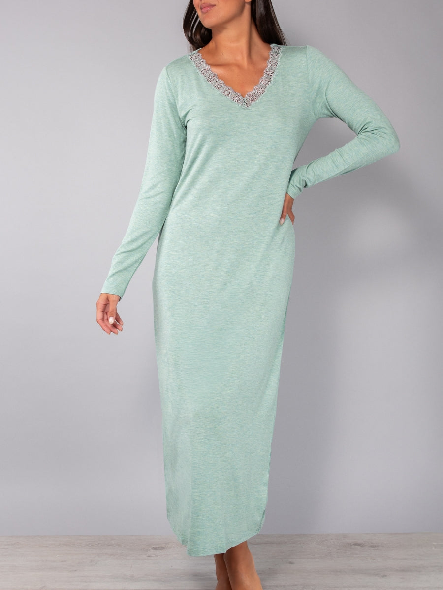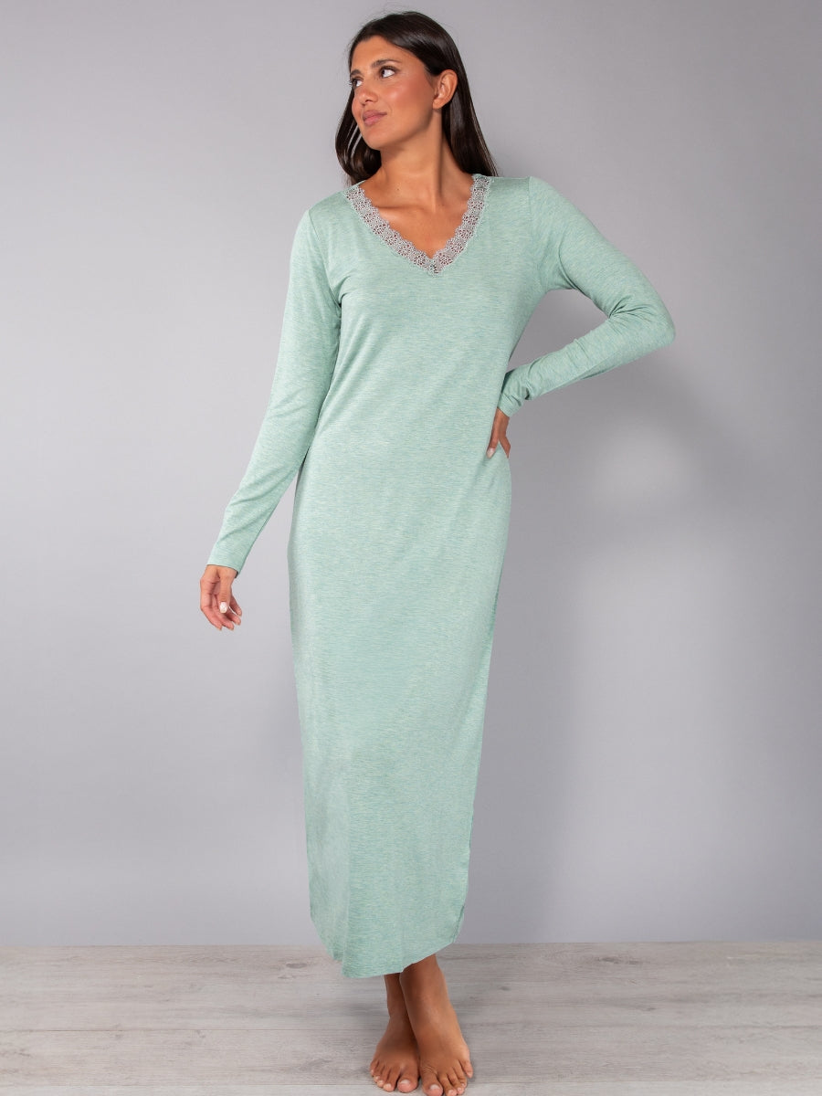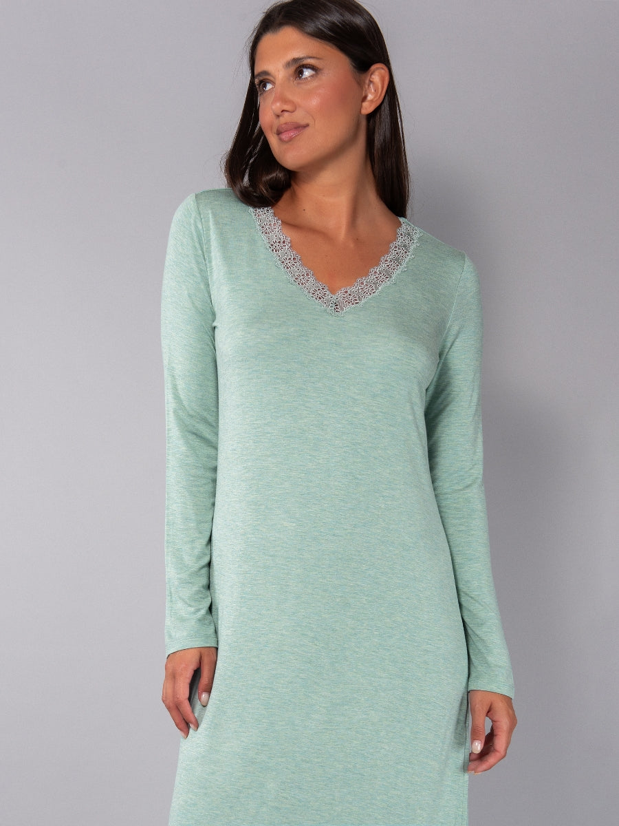 Camicia da notte scollo V L.125 - SALVIA MELANGE - A - SALVIA MELANGE - MC29
