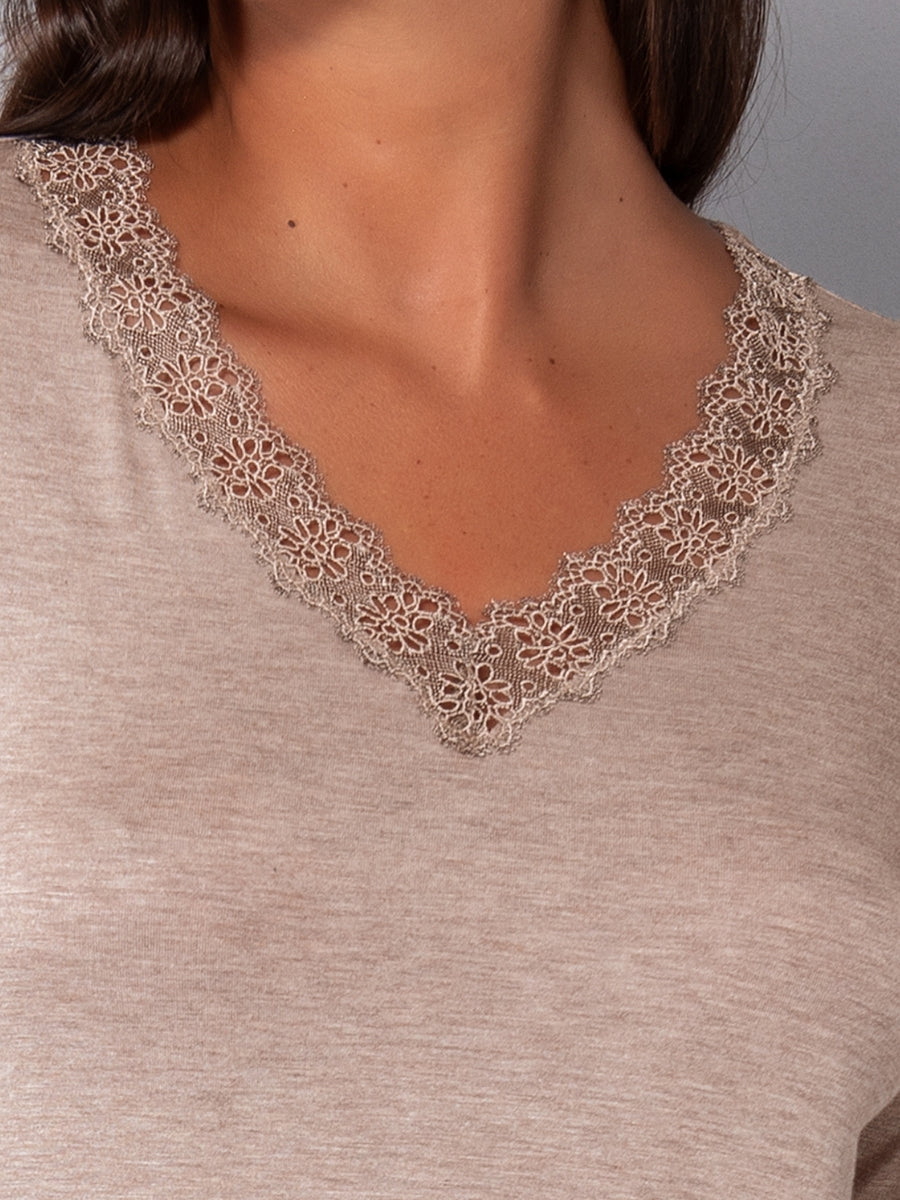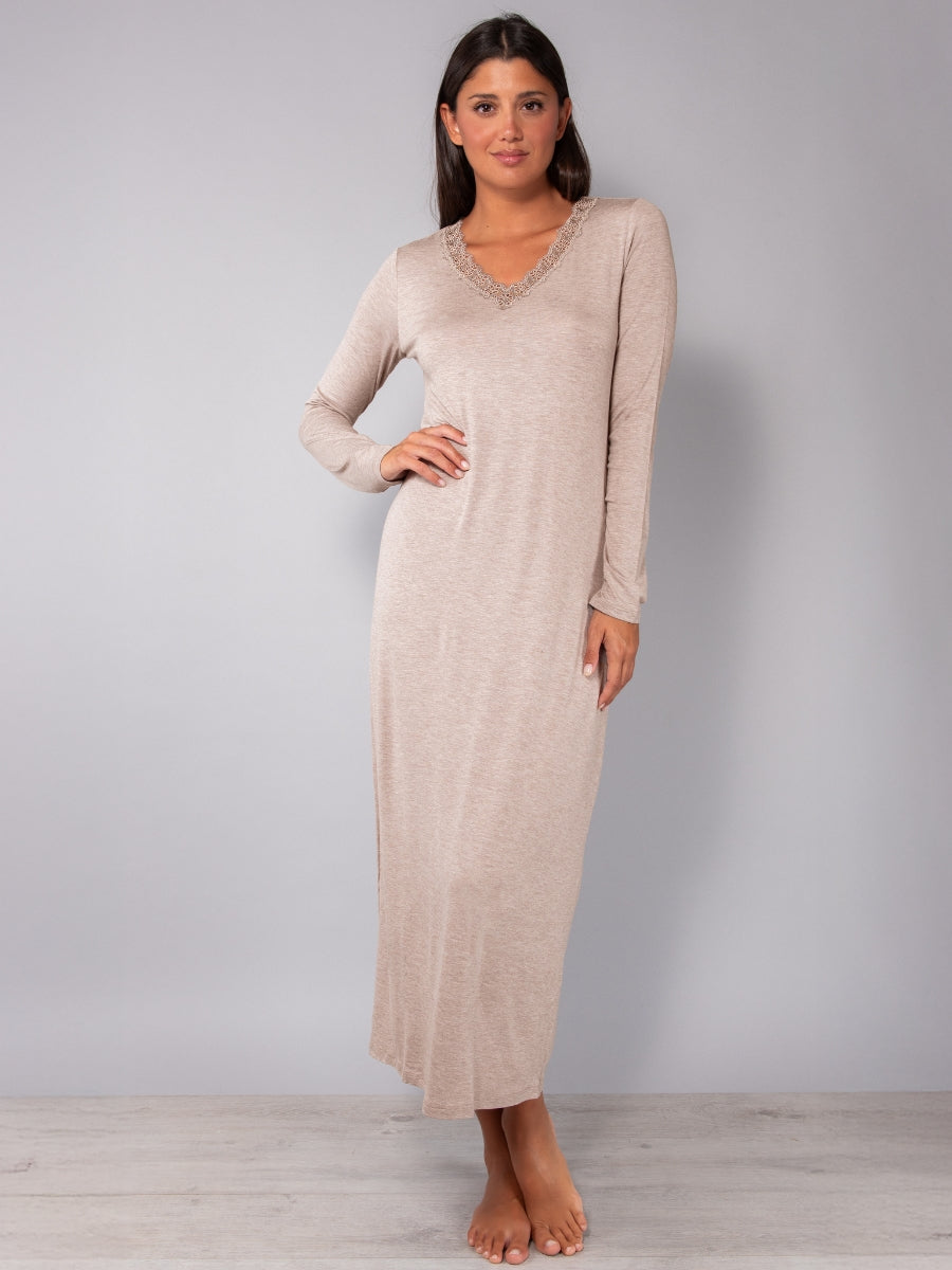 Camicia da notte scollo V L.125 - TORTORA MELANGE - A - TORTORA MELANGE - MC29