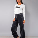 Il pantalone a gamba ampia in ciniglia con tasche frontali è un capo pratico e versatile, perfetto per l’uso quotidiano. Il taglio ampio e il tessuto caldo e morbido garantiscono comfort e libertà di movimento.
