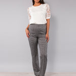 Perfetto da abbinare a maglie, bluse o blazer, questo pantalone check diventa un capo chiave per look casual, smart casual e formali, unendo eleganza discreta e comodità.