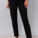 Il pantalone a gamba dritta in tessuto elasticizzato offre una vestibilità aderente senza rinunciare al comfort quotidano.