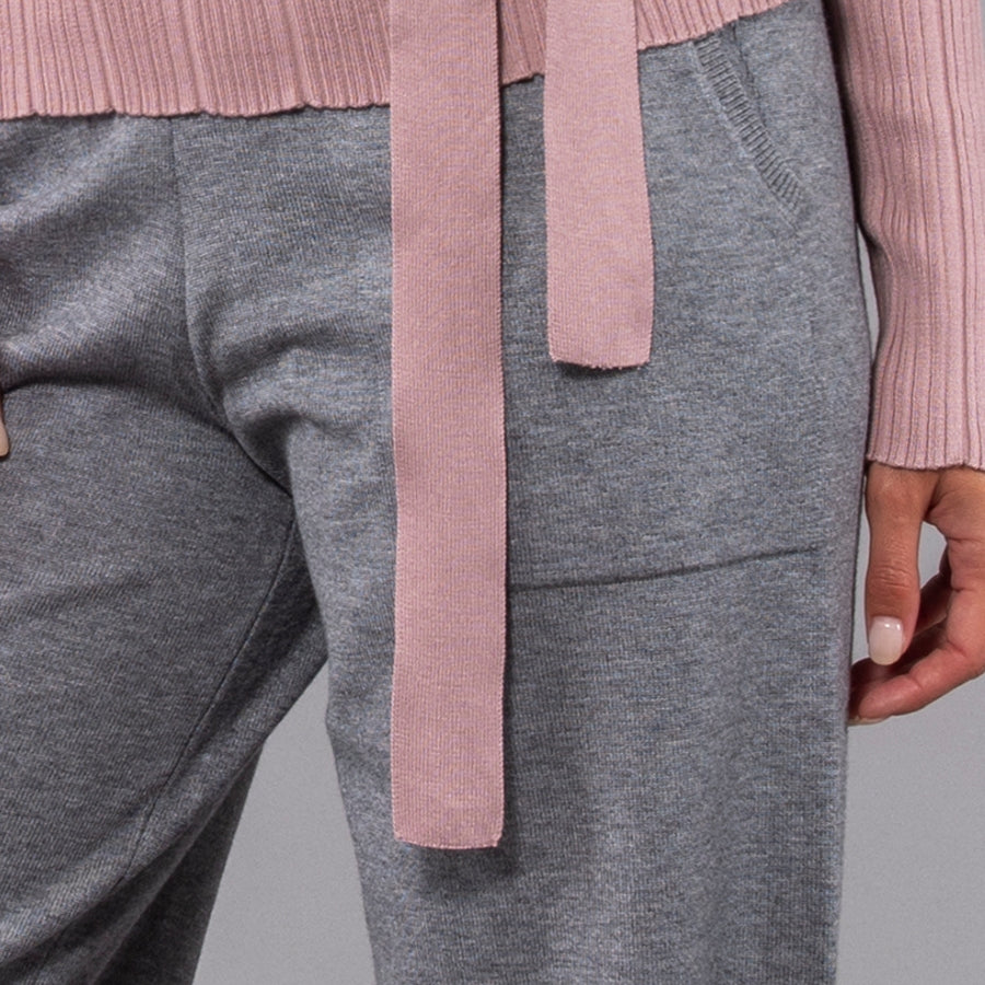 Pantalone con polsino a costine - GRIGIO MELANGE - HA61