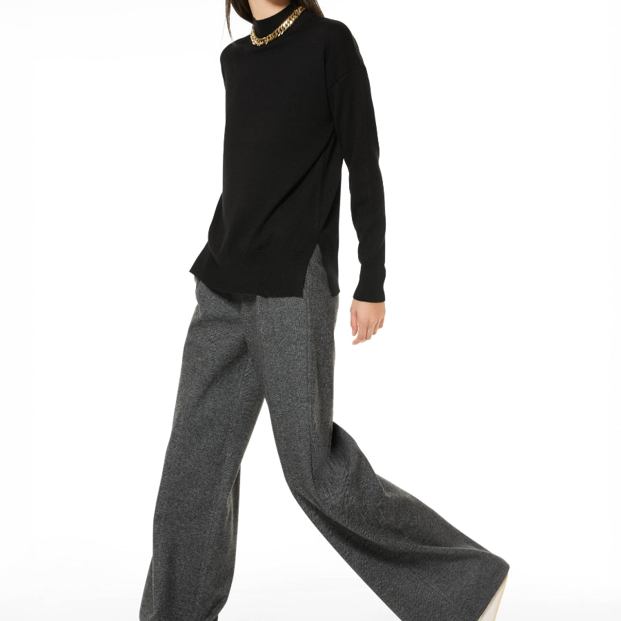 Pantalone a gamba ampia in morbida viscosa, dotato di tasche e coulisse regolabile in vita per una vestibilità personalizzata. Il taglio fluido valorizza la silhouette unendo comfort e stile.