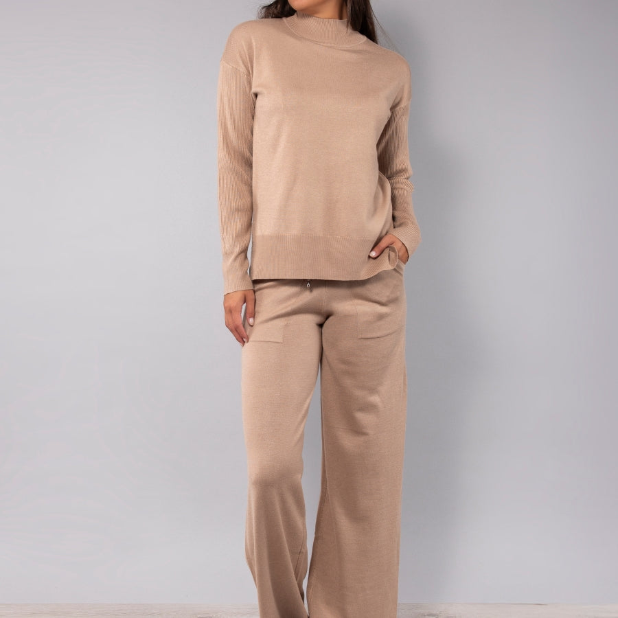 Pantalone a gamba ampia in morbida viscosa, dotato di tasche e coulisse regolabile in vita per una vestibilità personalizzata. Il taglio fluido valorizza la silhouette unendo comfort e stile.