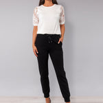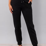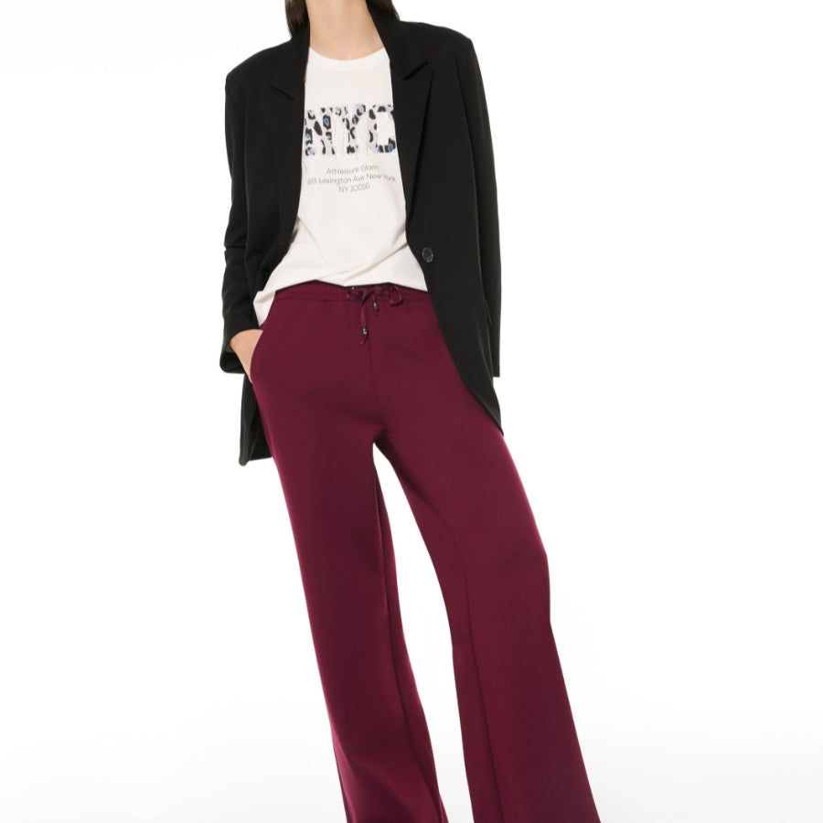 Il pantalone tuta con polsini è realizzato in tessuto di viscosa, con vita elasticizzata e coulisse regolabile che garantiscono una vestibilità confortevole. Le tasche laterali e i polsini sul fondono aggiungono praticità, mentre il taglio dritto valorizza la silhouette senza costringere.