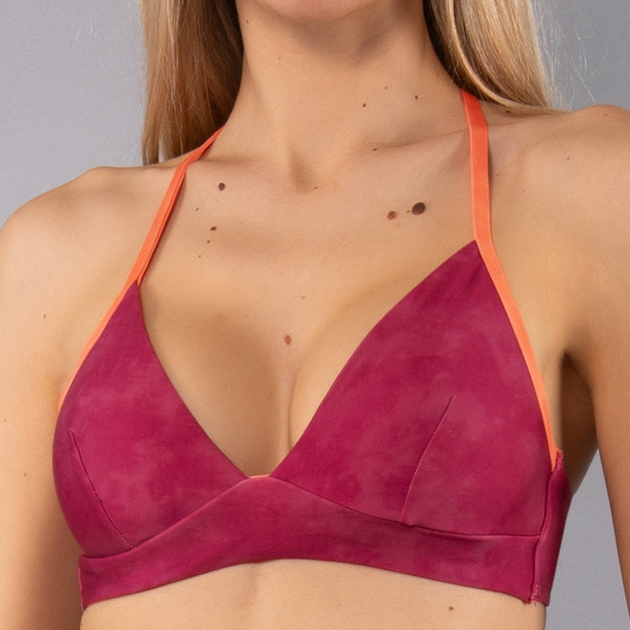 Fascia imbottita realizzata in un particolare tessuto effetto spalmato opaco. Il design essenziale presenta coppe imbottite estraibili che permettono di personalizzare l'effetto volume, garantendo un sostegno confortevole e naturale. Il modello è completato da una spallina removibile a contrasto in dotazione.