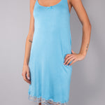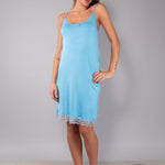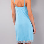 Camicia da Notte Corta Spallina in Viscosa e Pizzo - AZZURRO - PR29