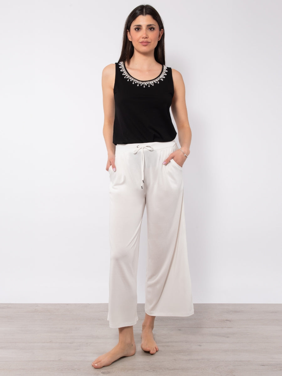 Pantaloni lunghi soft touch con coulisse - MILK - PA84