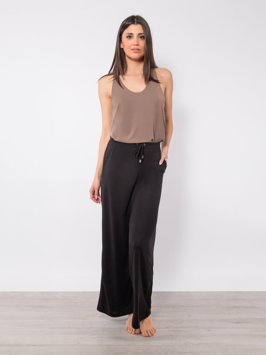 Pantaloni lunghi soft touch con coulisse e tasche - NERO - PA85