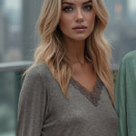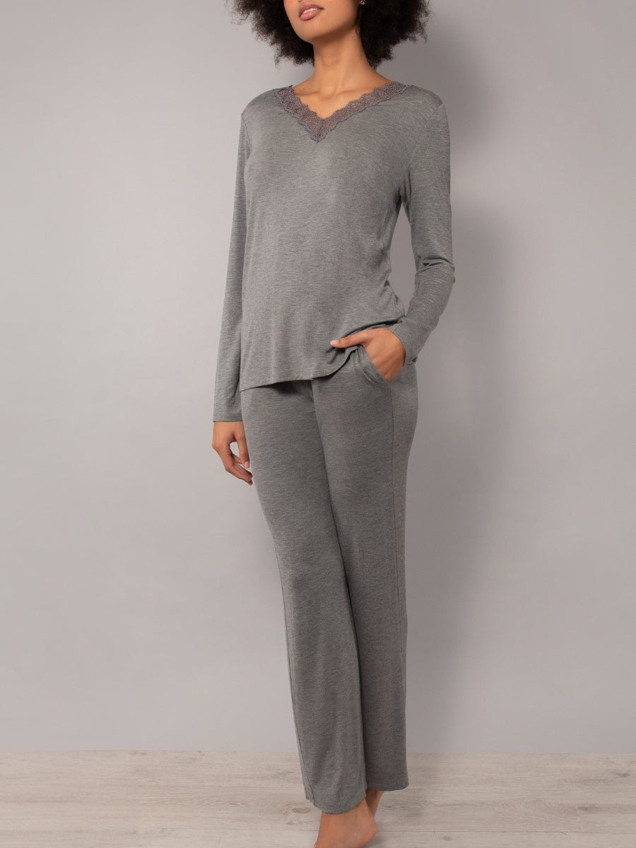 Pigiama scollo a V - GRIGIO SCURO MELANGE - A - GRIGIO SCURO MELANGE - MC12