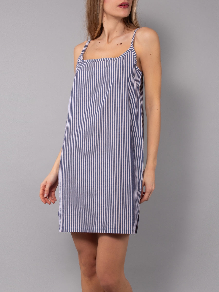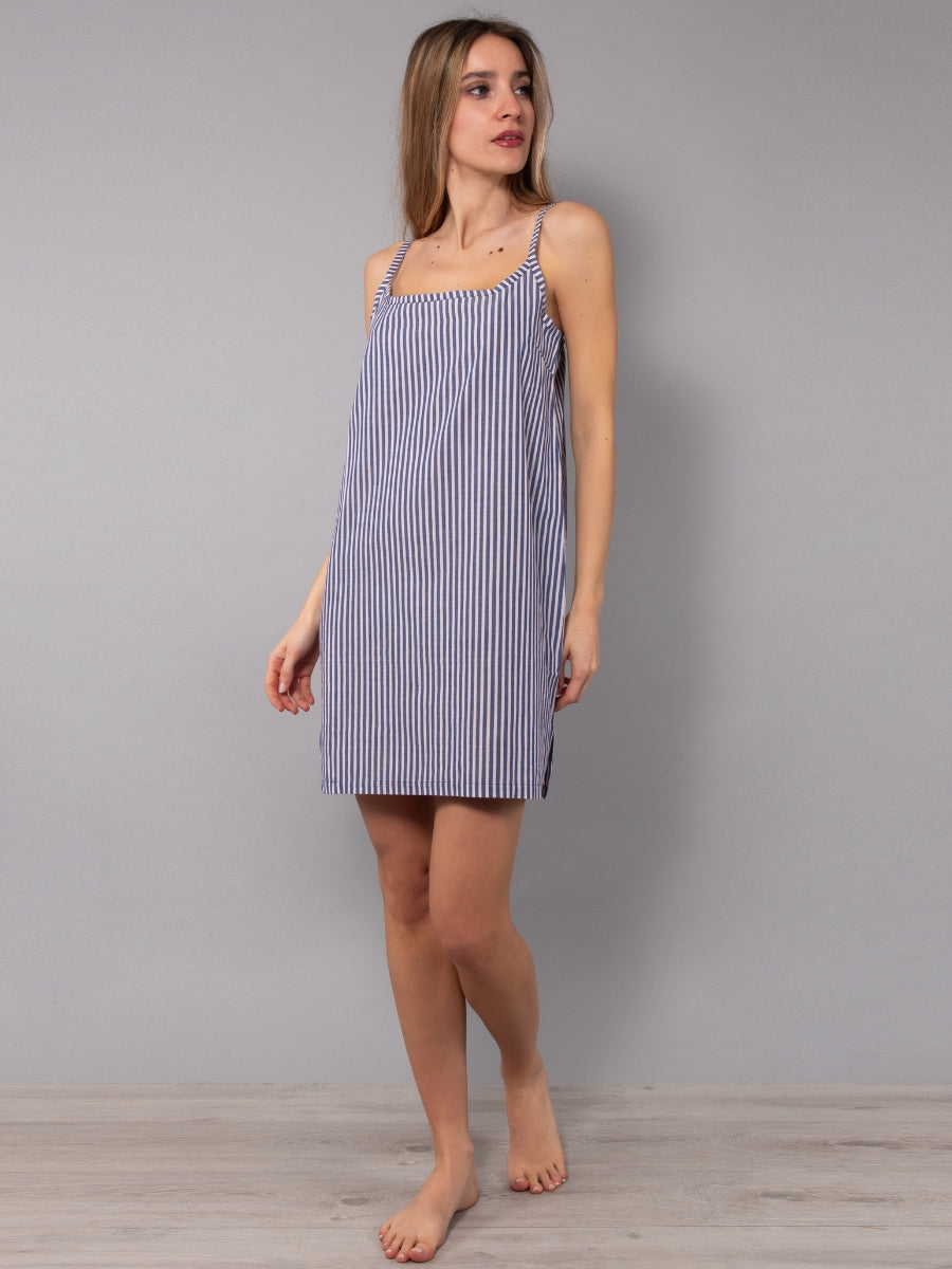 Camicia da Notte Corta Spallina in Cotone Righe - BLU - NS29