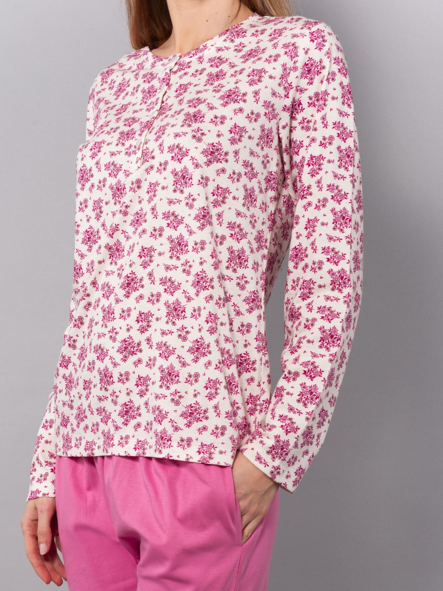 Pigiama Serafino Lungo in Cotone Bouquet - FUXIA - NB11
