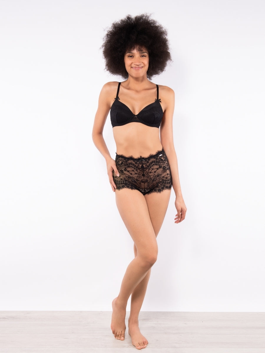 Culotte realizzata in morbido e impalpabile pizzo con trama floreale. Il design sofisticato si adatta armoniosamente alle forme del corpo, offrendo una vestibilità confortevole.