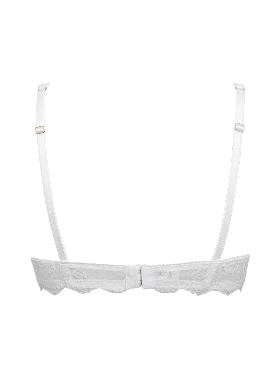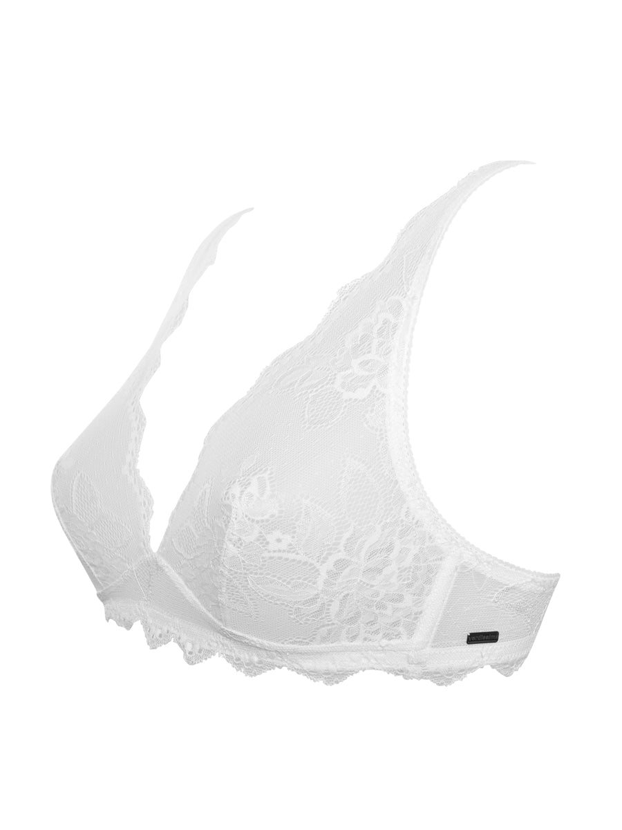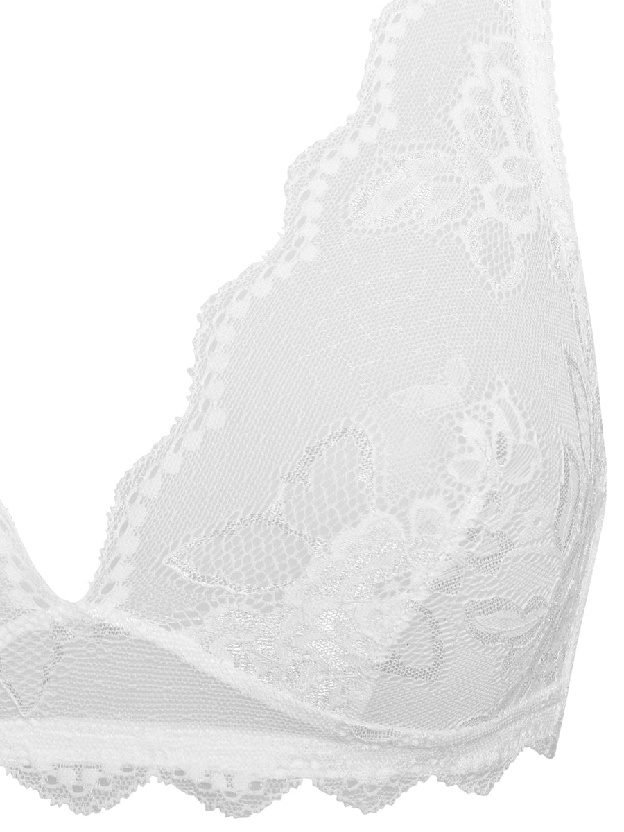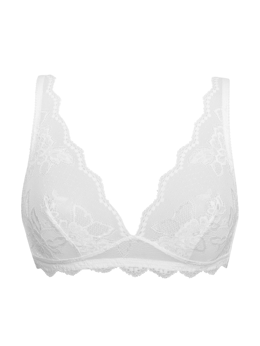 Reggiseno a triangolo non imbottito senza ferretto con spallina larga. Triangolo realizzato in morbido pizzo dal prezioso smerlo con romantica trama floreale. La texture piatta e leggera del pizzo assicura comfort e delicatezza sulla pelle all day long.