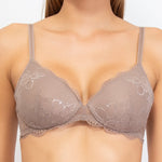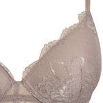 Reggiseno con coppe graduate senza ferretto. Perfetto per valorizzare il décolleté garantendo massimo comfort. Reggiseno realizzato in morbido pizzo dal prezioso smerlo con romantica trama floreale. Crea infinite combinazioni con gli slip in pizzo e in microfibra in nuance.