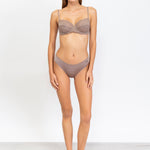 Slip realizzato in microfibra impalpabile semilucida combinata con romantico pizzo a trama floreale sulla parte posteriore. Slip confortevole e raffinato, perfetto per essere indossato alla day long. Crea infinite combinazioni con i reggiseni in pizzo e in microfibra in nuance.