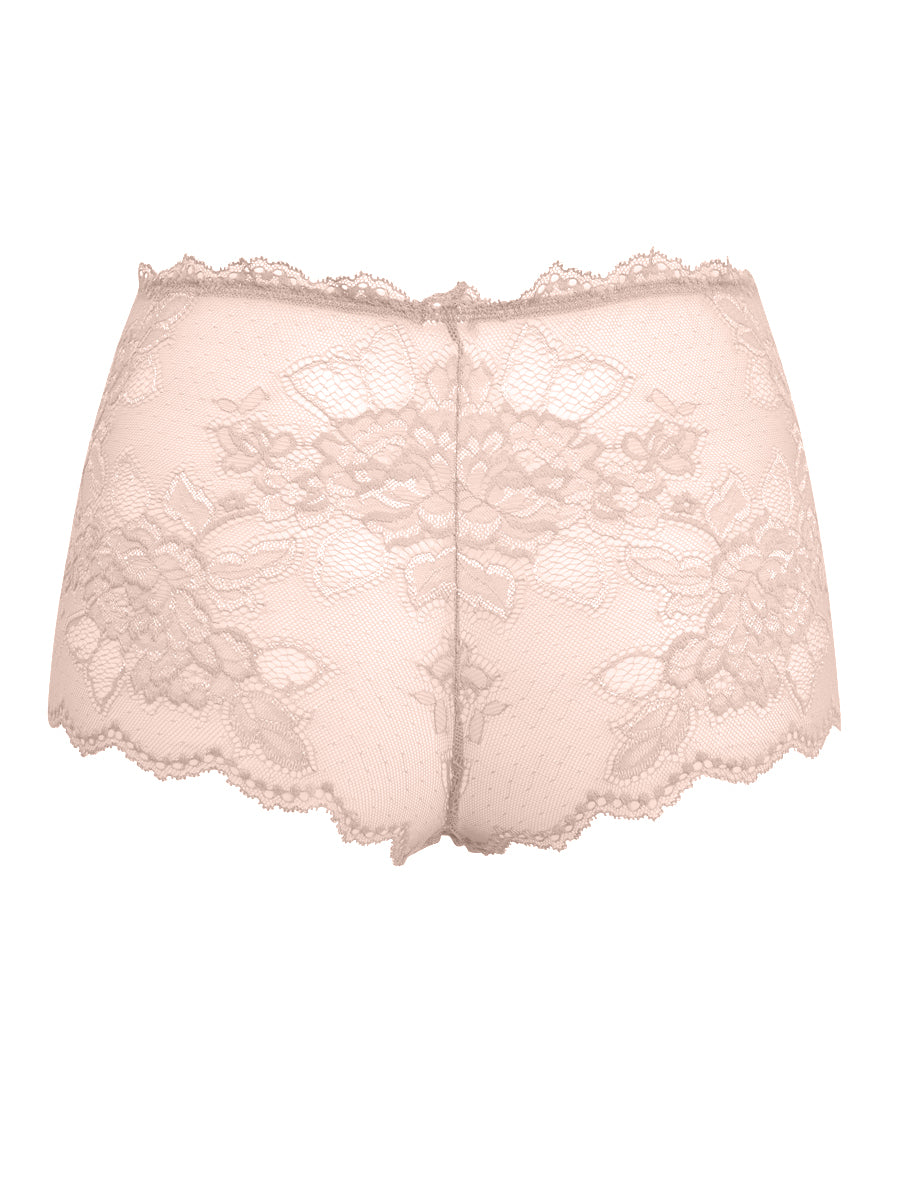 Culotte in morbido pizzo con raffinata trama floreale. Sensuale e romantica, per uno stile intramontabile. Crea infinite combinazioni con i reggiseni in pizzo e in microfibra in nuance.