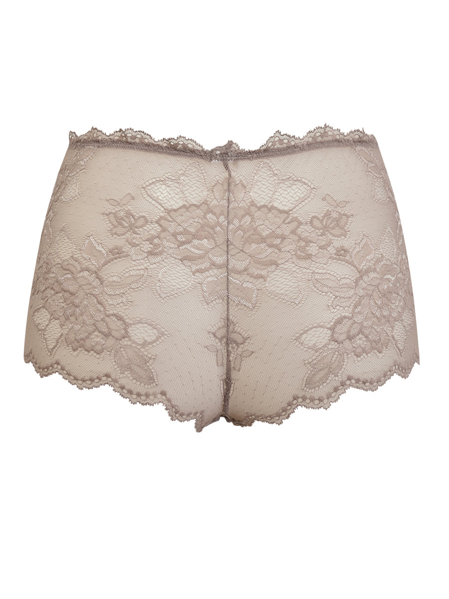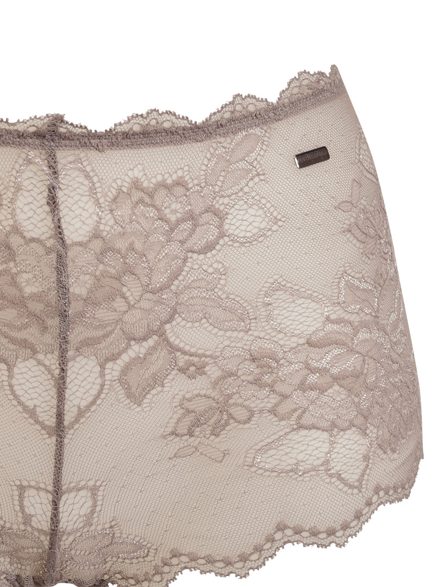 Culotte in morbido pizzo con raffinata trama floreale. Sensuale e romantica, per uno stile intramontabile. Crea infinite combinazioni con i reggiseni in pizzo e in microfibra in nuance.