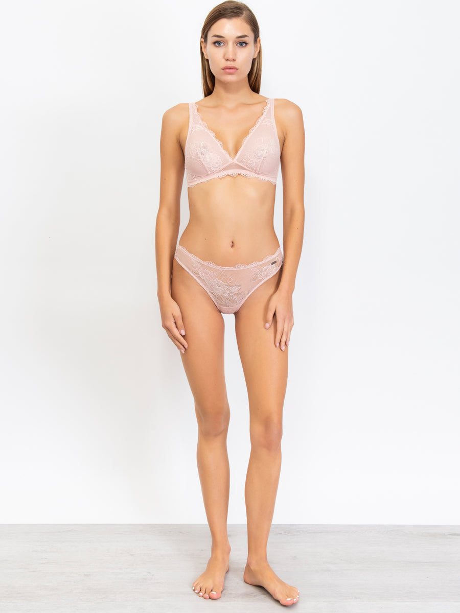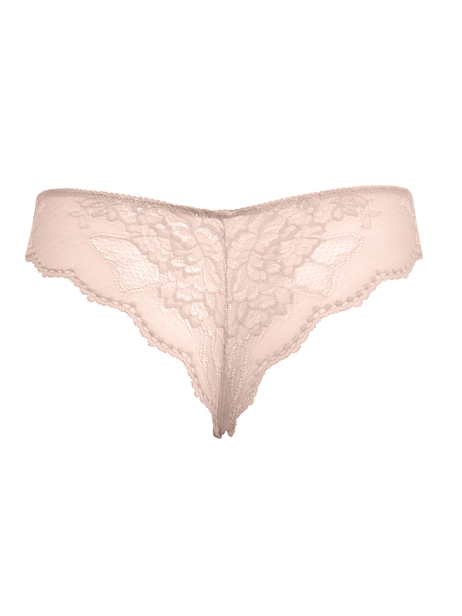 Brasiliana realizzata in morbido pizzo con raffinata trama floreale. Per uno stile romantico e raffinato. Crea infinite combinazioni con i reggiseni in pizzo e in microfibra in nuance.
