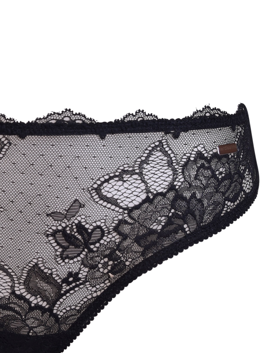 Brasiliana realizzata in morbido pizzo con raffinata trama floreale. Per uno stile romantico e raffinato. Crea infinite combinazioni con i reggiseni in pizzo e in microfibra in nuance.