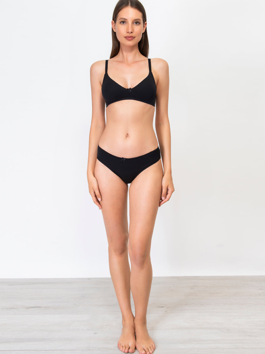 Reggiseno a triangolo non imbottito e senza ferretto realizzato in cotone bio, ideale per chi ricerca un comfort e un sostegno naturale. Design essenziale impreziosito da puntina in pizzo e fiocchetto centroseno. Il cotone bio si fa glamour nella nuova collezione Verdissima: semplicità e raffinatezza danno forma a molteplici modelli basic ideati per un daily wear naturale, confortevole e di qualità.