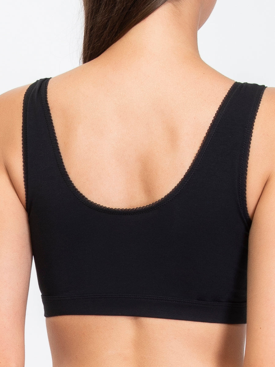 Top non imbottito e senza ferretto realizzato in cotone bio, perfetto per chi desidera un look sporty e comodo. Elastico sotto seno e spallina larga per un sostegno naturale. Da indossare anche a vista per outfit casual e di tendenza. Il cotone bio si fa glamour nella nuova collezione Verdissima: semplicità e raffinatezza danno forma a molteplici modelli basic ideati per un daily wear naturale, confortevole e di qualità.