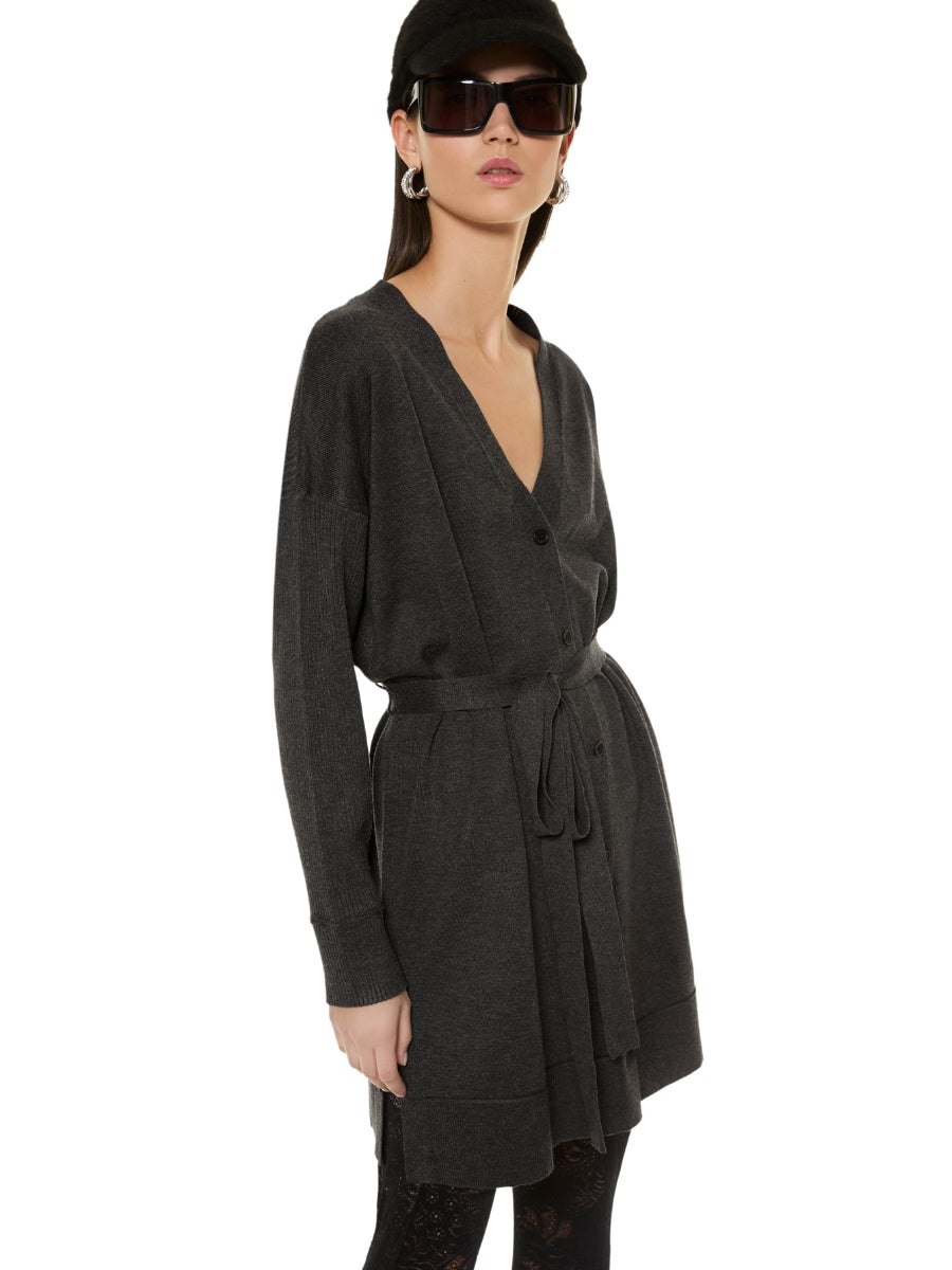 Cardigan lungo con cintura - GRIGIO MELANGE - BE70