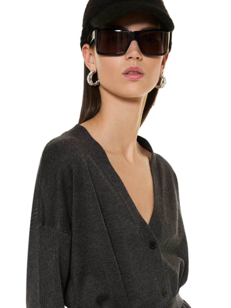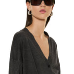 Il cardigan lungo in morbida viscosa completa ogni look con eleganza e stile contemporaneo. La chiusura con bottoni e la cintura in vita, che valorizza la silhouette, aggiungono dettaglio sofisticato al design essenziale.