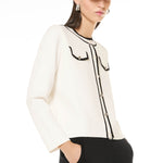 Giacca con bottoni realizzata in viscosa e caratterizzata da bordature a contrasto. Design elegante e classico impreziosito da dettagli raffinati.