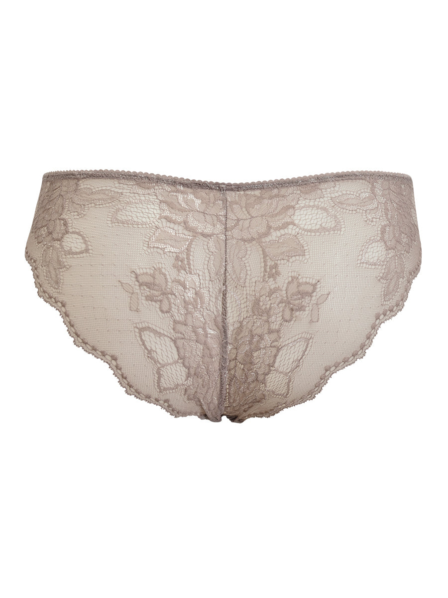 Slip realizzato in microfibra impalpabile semilucida combinata con romantico pizzo a trama floreale sulla parte posteriore. Slip confortevole e raffinato, perfetto per essere indossato alla day long. Crea infinite combinazioni con i reggiseni in pizzo e in microfibra in nuance.