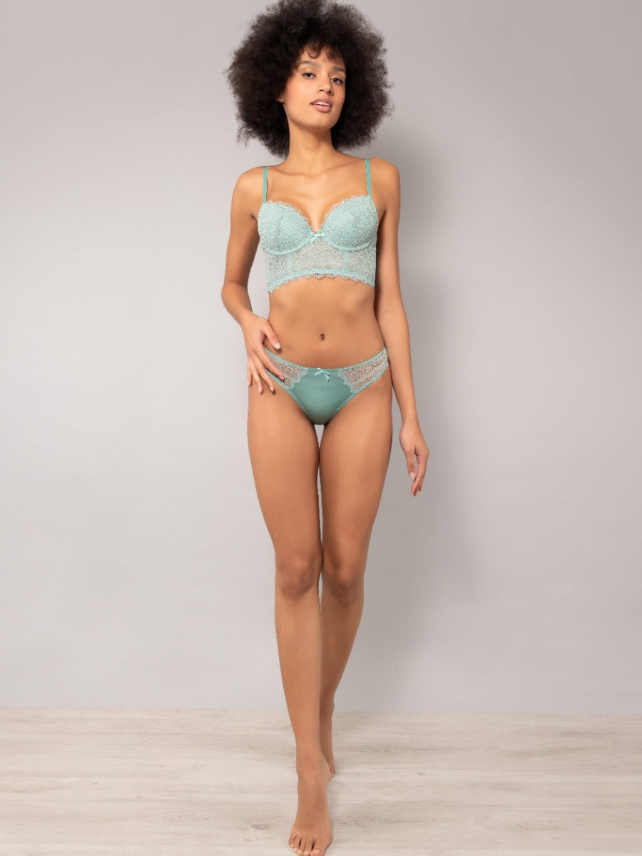 Perizoma in microfibra e pizzo Macramè - SALVIA - MA36