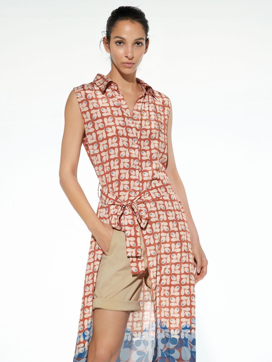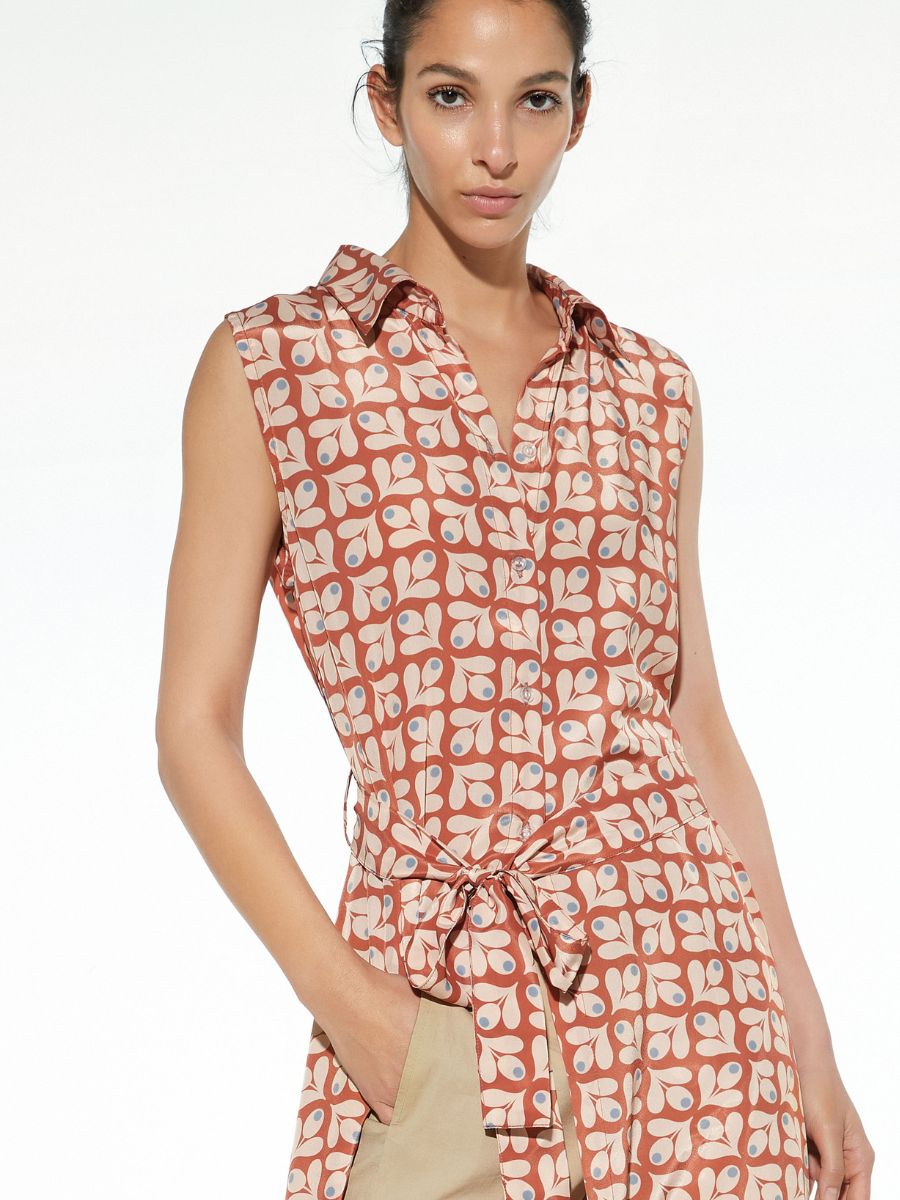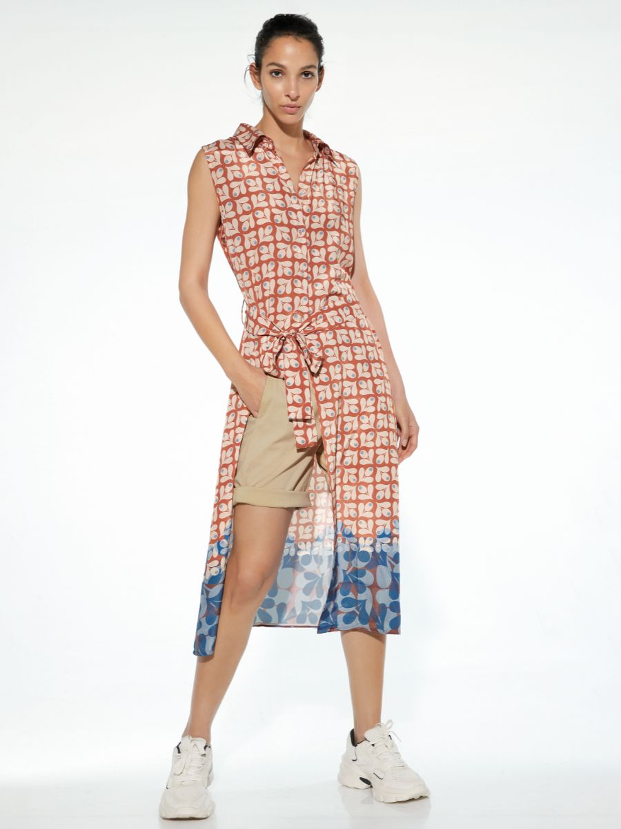 Abito midi chemisier con stampa geometrica - CARAMELLO - AM59