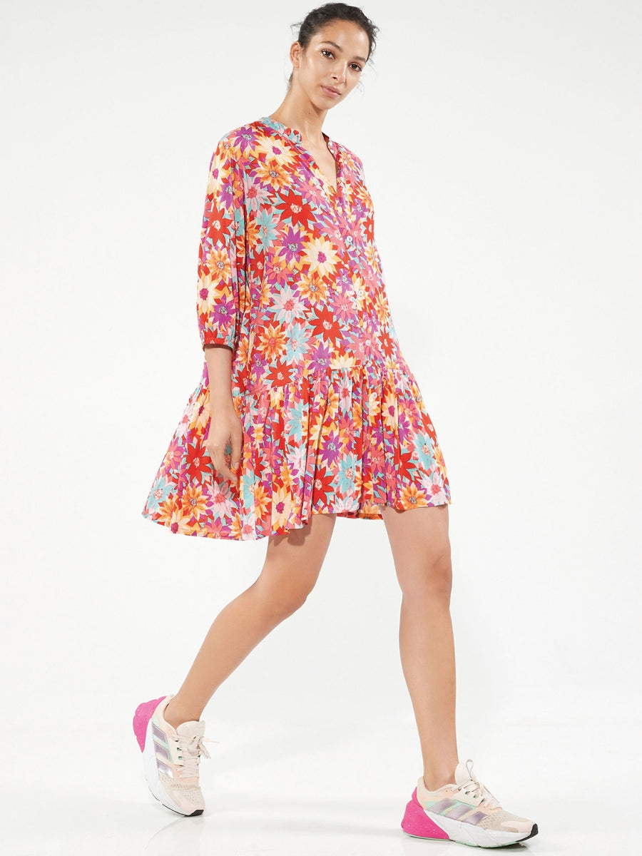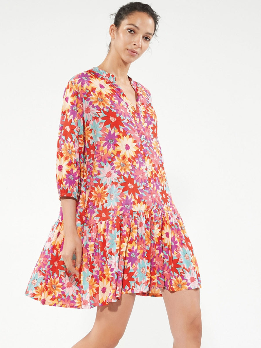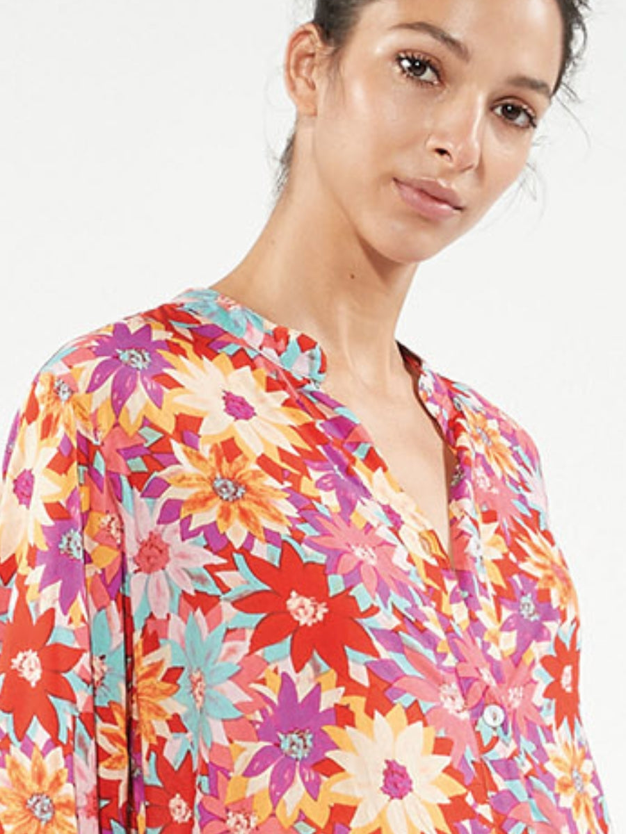 Kaftano corto in viscosa con stampa floreale - ORCHIDEA - KC01