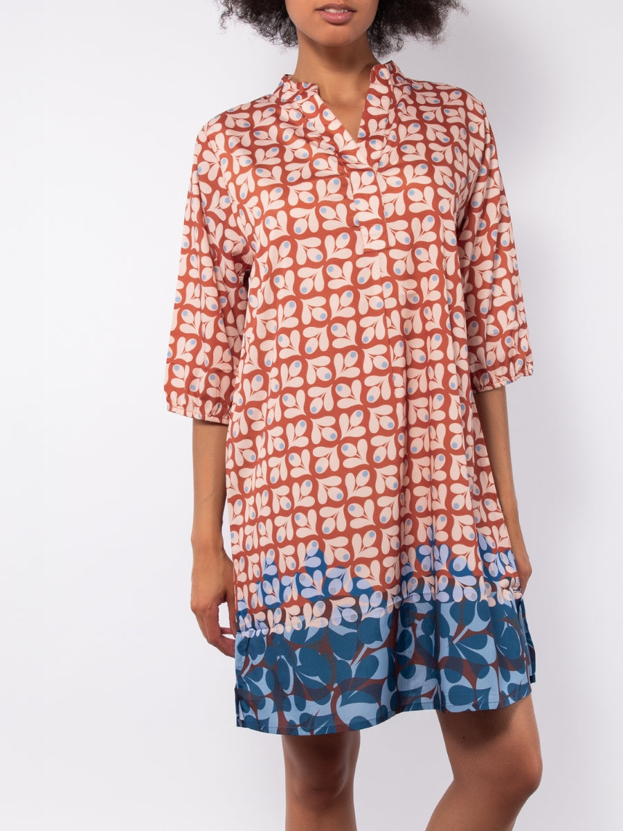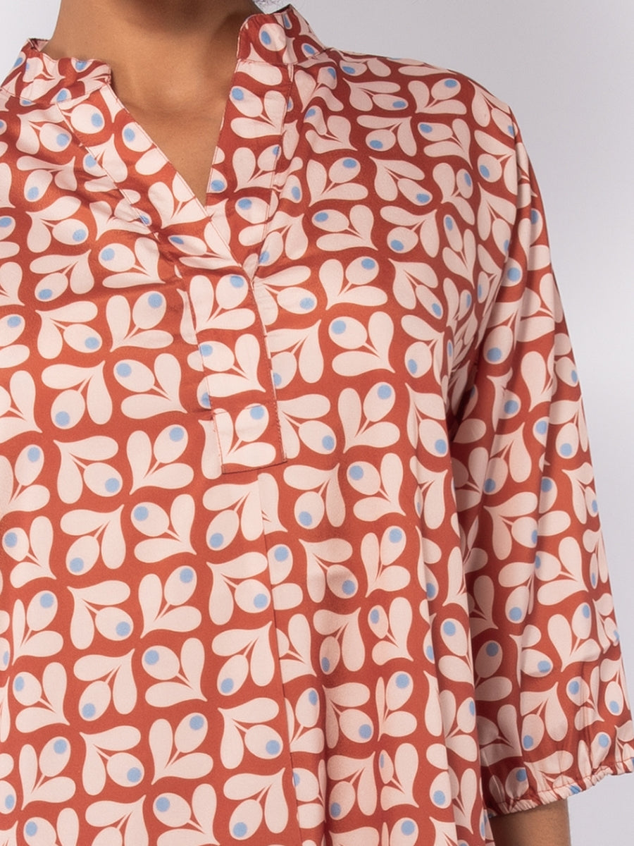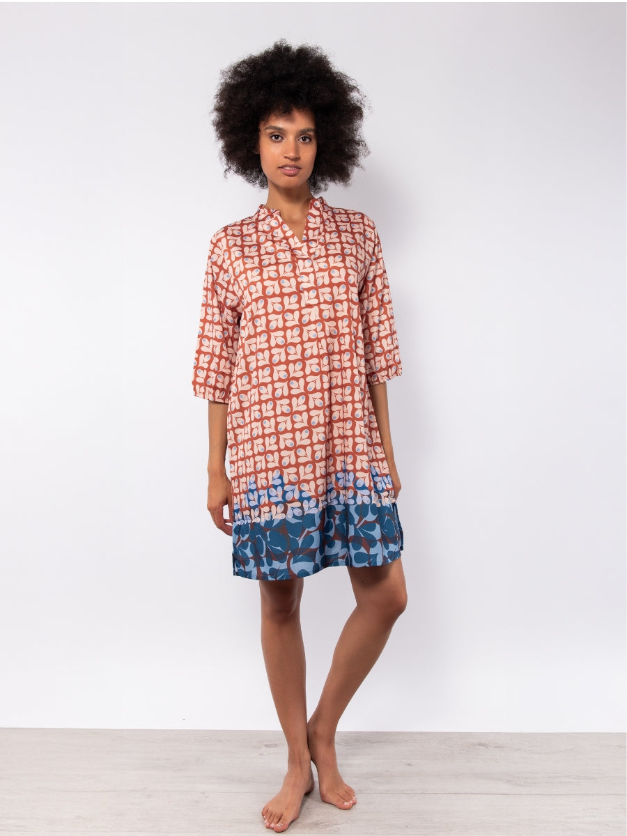 Kaftano corto con stampa geometrica - CARAMELLO - KC61