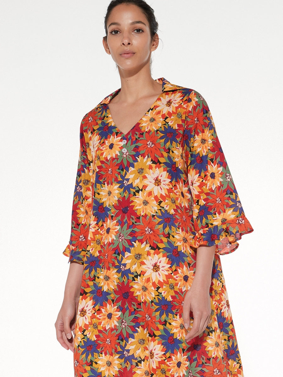 Kaftano lungo in viscosa con stampa floreale - IBISCUS - KL03