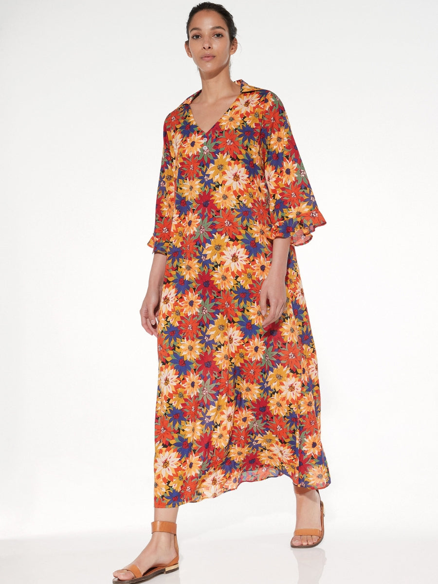 Kaftano lungo in viscosa con stampa floreale - KL03