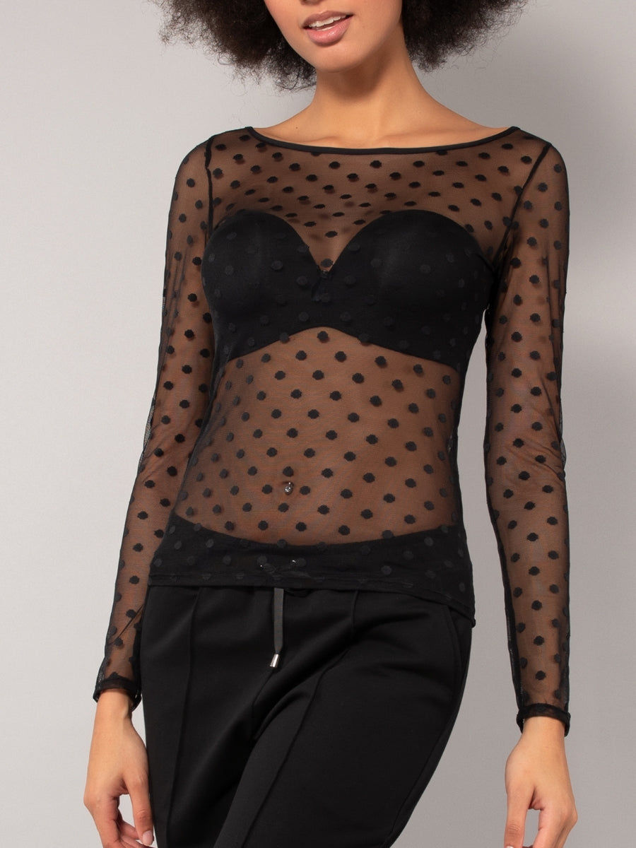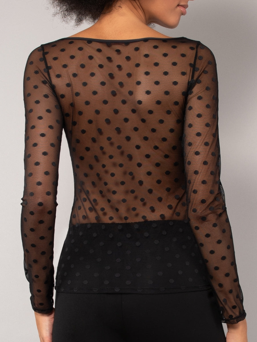 Maglia scollo barchetta in tulle pois - VARIANTE UNICA - SH50