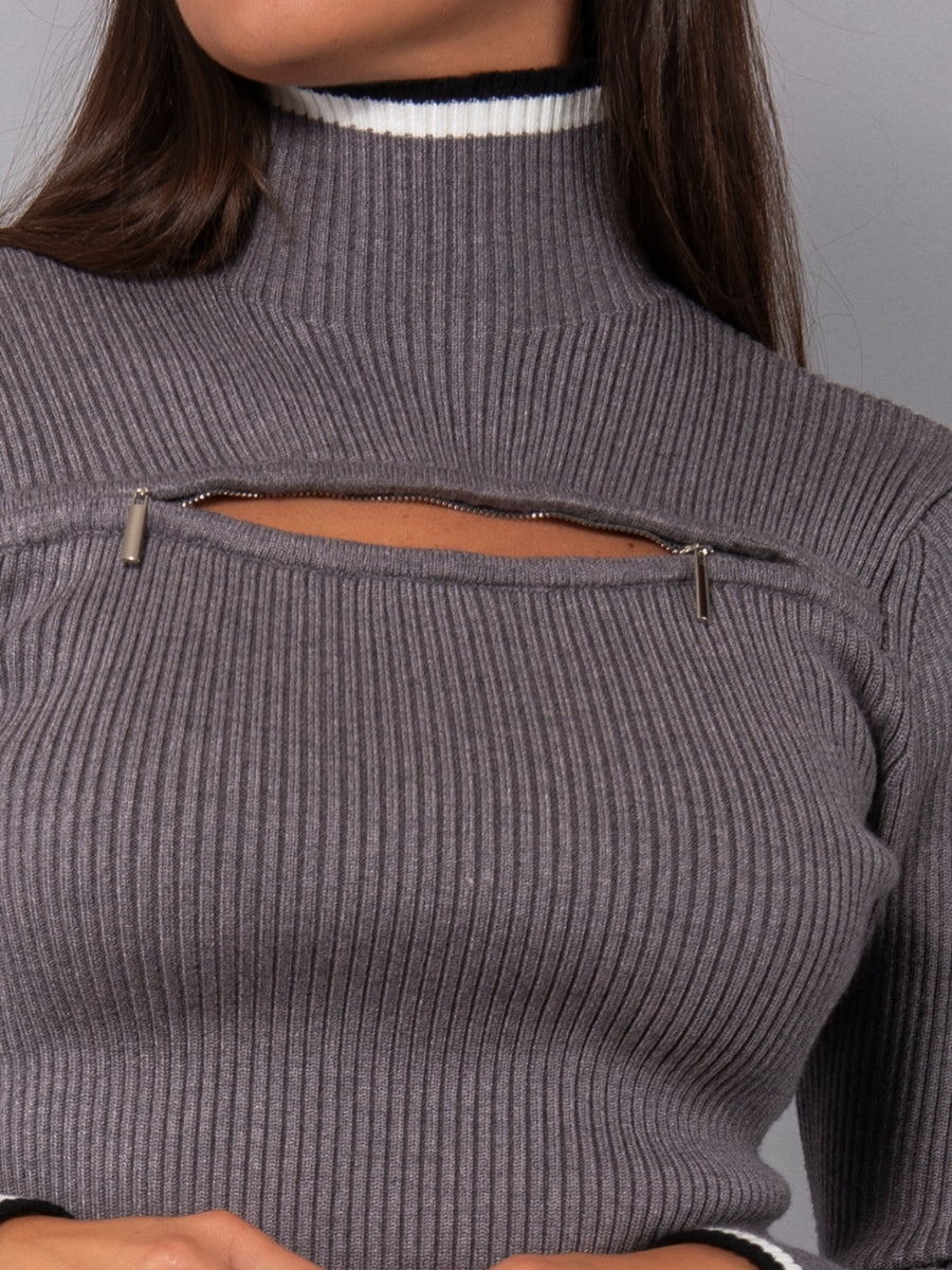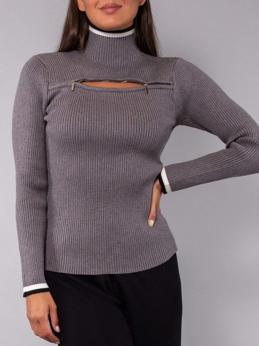 Maglia a coste con zip - GRIGIO MELANGE - AS51
