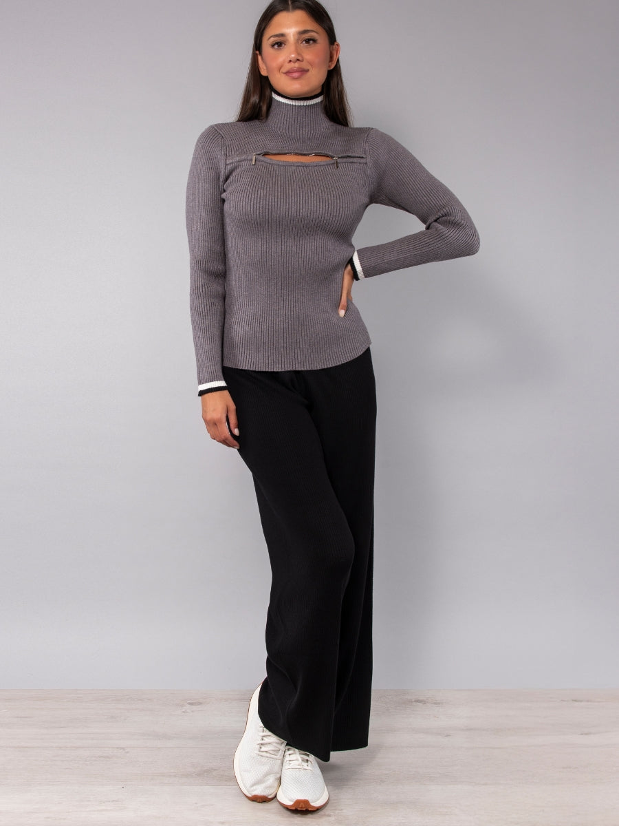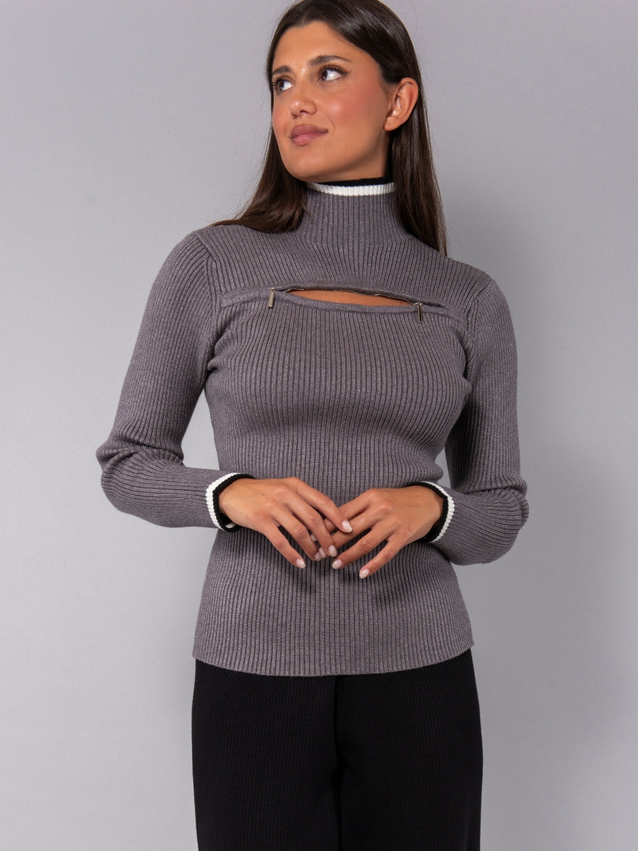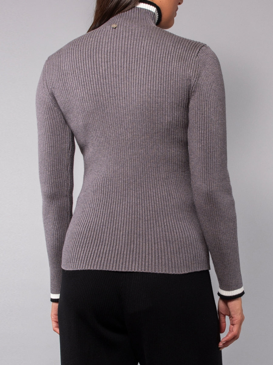 La maglia a collo alto con zip interpreta lo stile sporty chic con linee pulite e dettagli distintivi. Realizzata in morbida maglia a costine, segue e valorizza la silhouette con naturalezza.